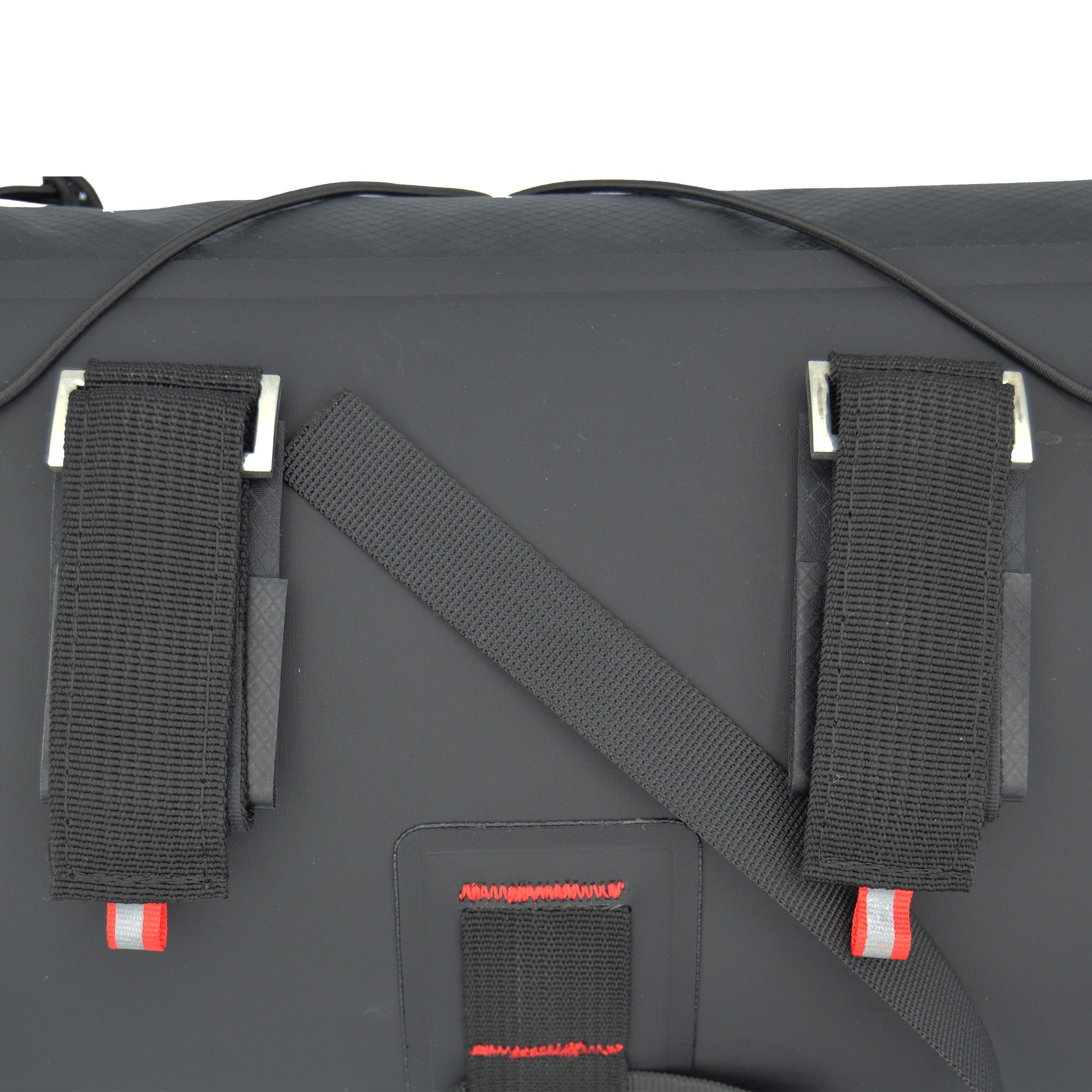 - Panel trasero reforzado: Laminado de Hypalon con espuma de alta densidad interna que aumenta la estabilidad sin dejar de proteger el manillar y cables frente a rozaduras.
